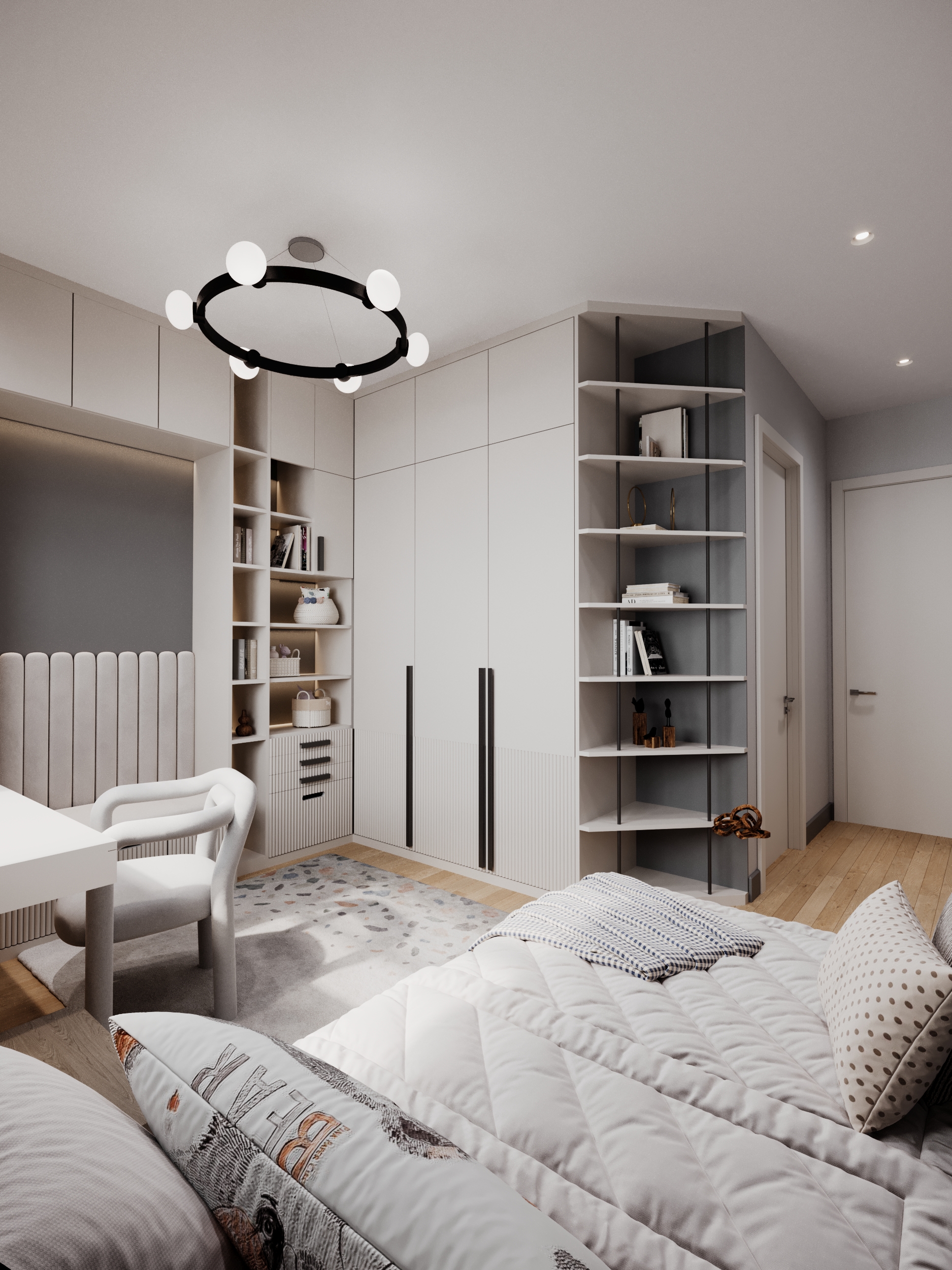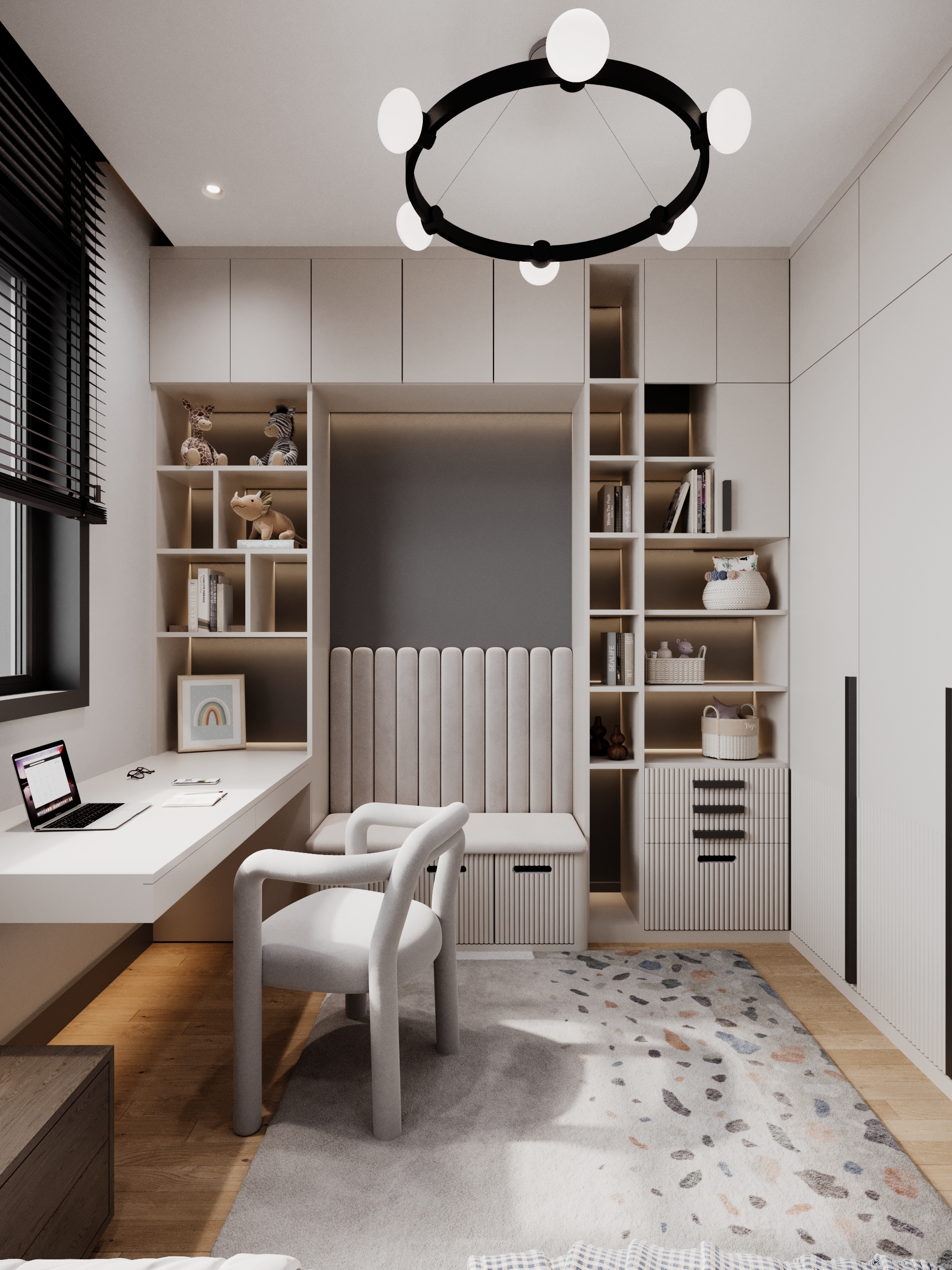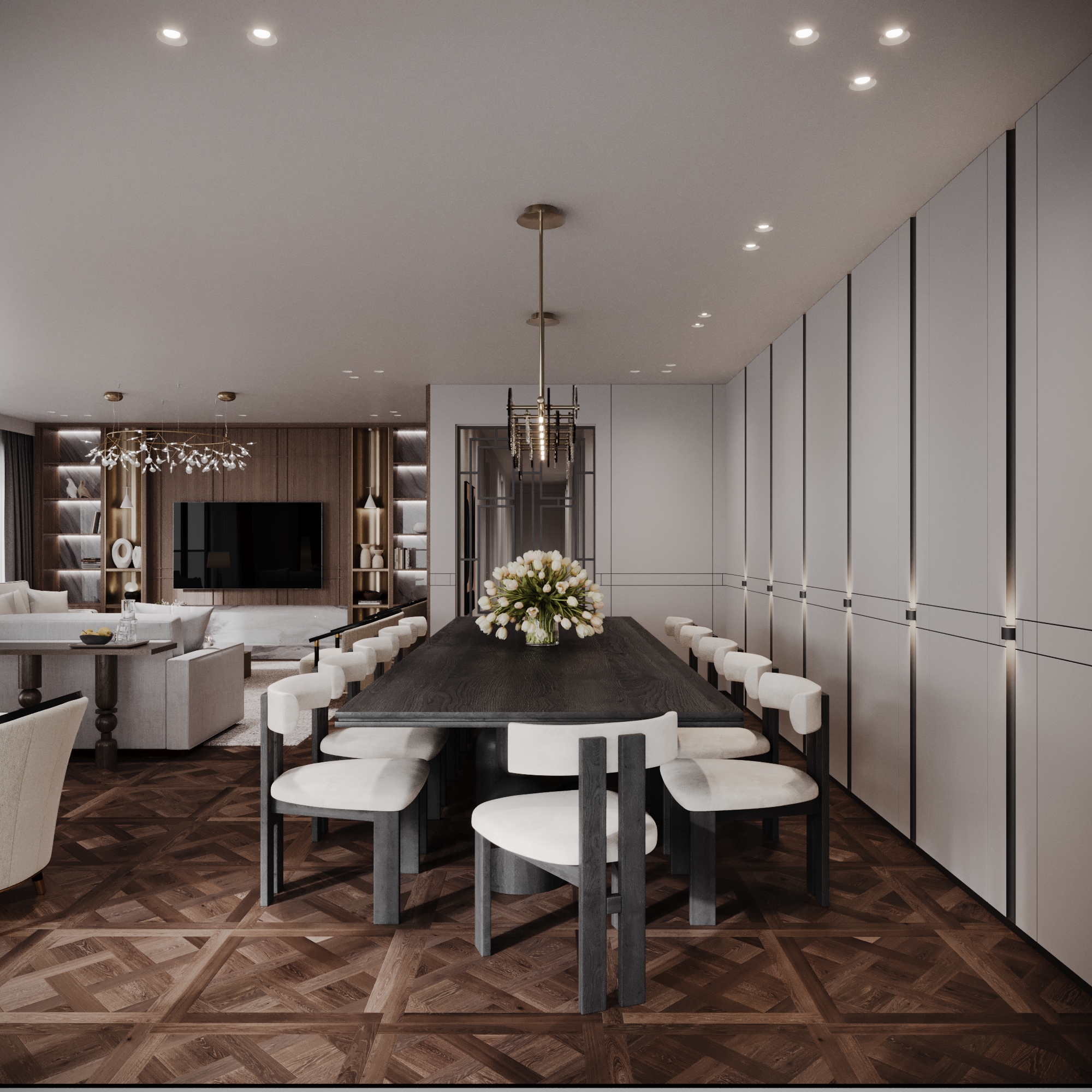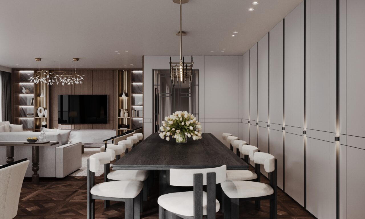 This family-oriented residential project is shaped around a functional and cohesive interior concept. Custom furniture solutions enhance spatial efficiency, while the harmony between wood and stone surfaces establishes a calm and natural atmosphere. Fine metal accents are introduced as subtle highlights, enriching the overall design with understated elegance and depth.The interior reflects a balanced approach where comfort, practicality, and timeless aesthetics come together.