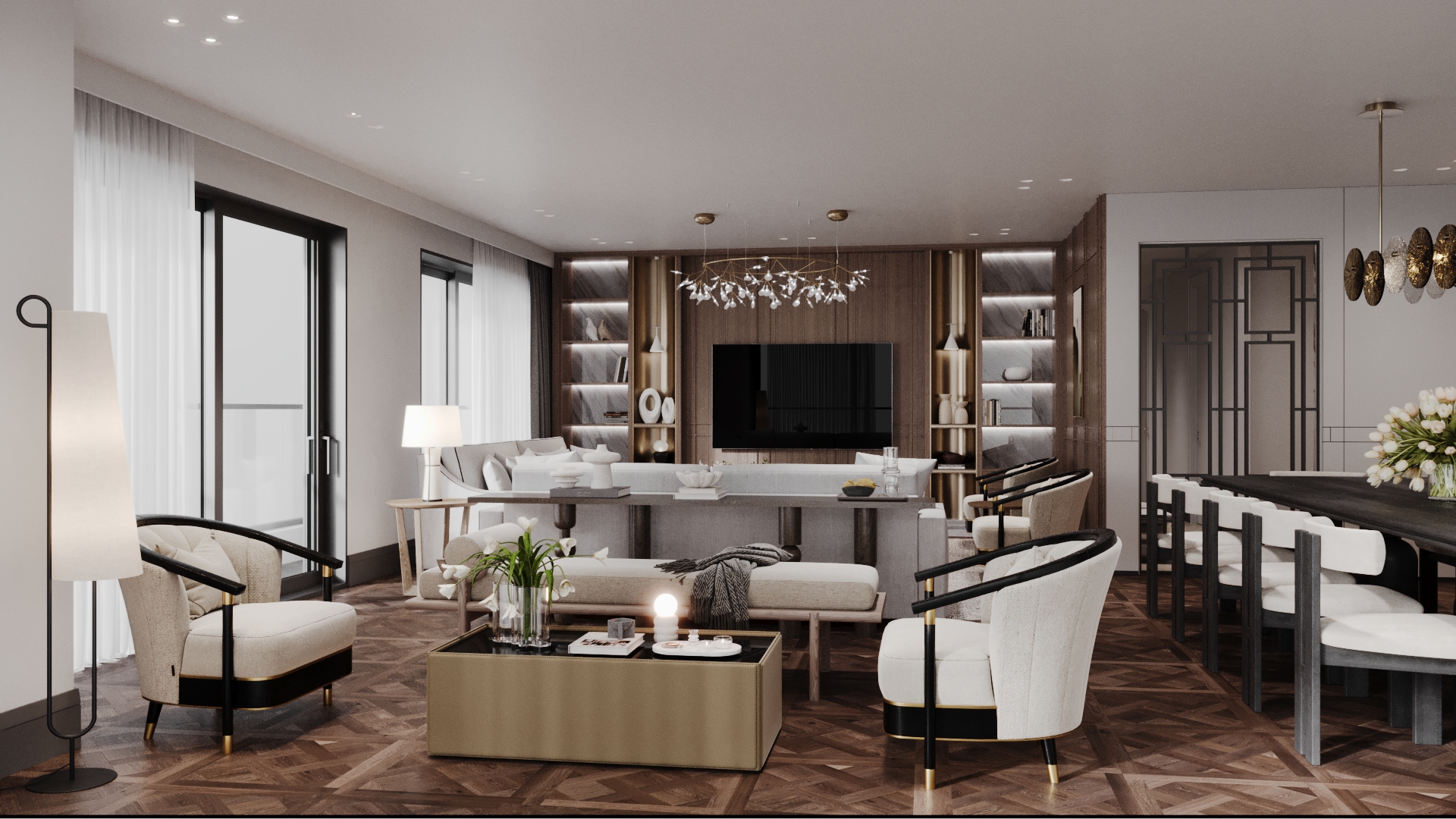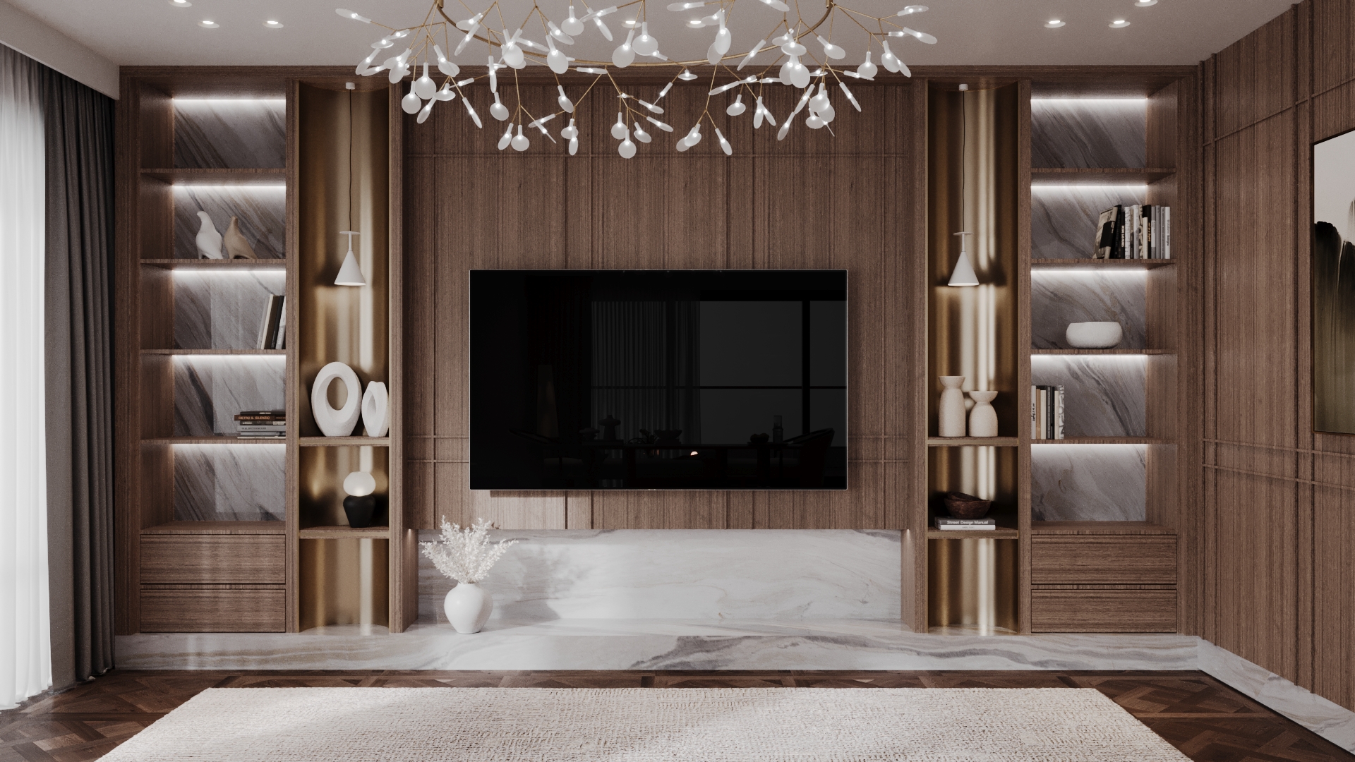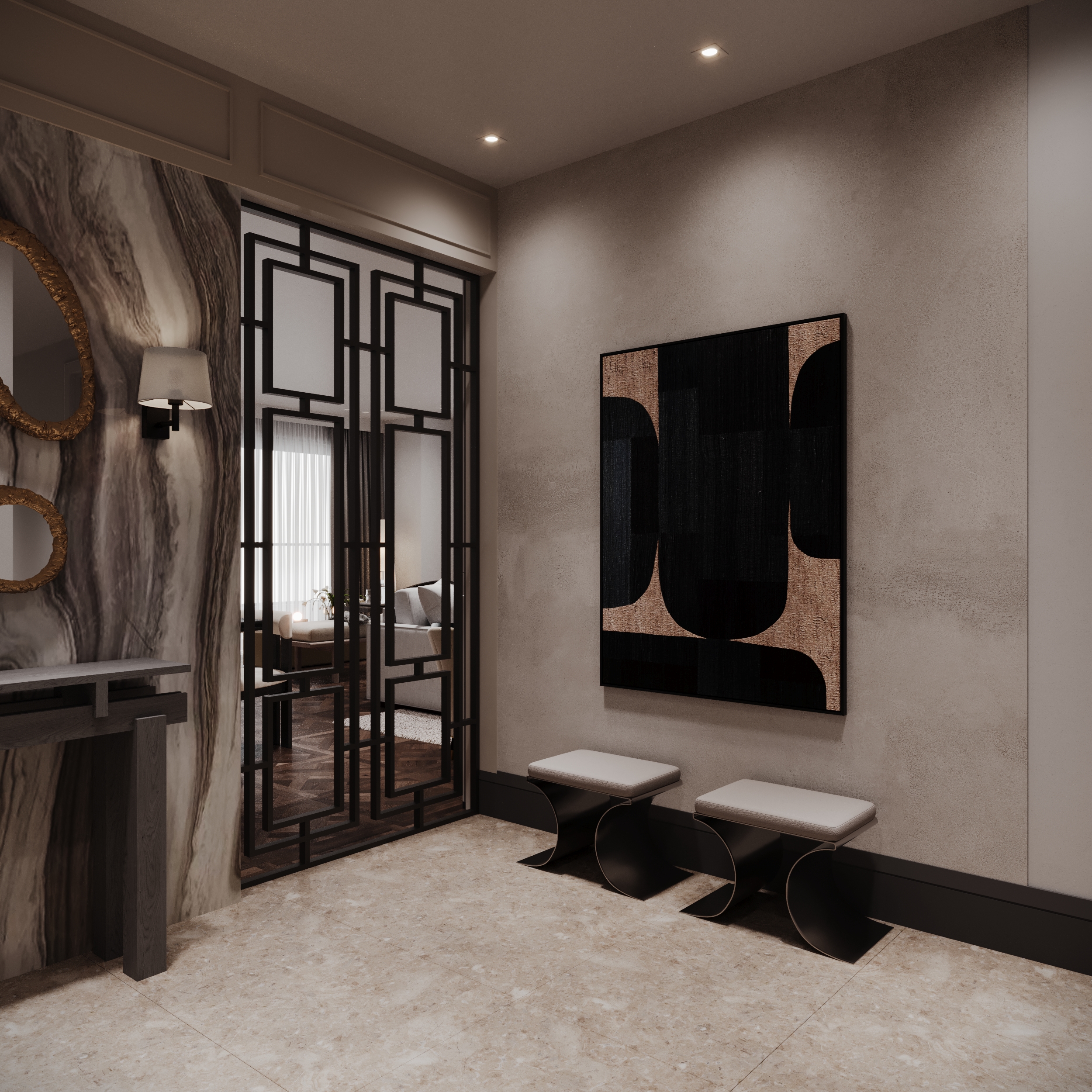 This family-oriented residential project is shaped around a functional and cohesive interior concept. Custom furniture solutions enhance spatial efficiency, while the harmony between wood and stone surfaces establishes a calm and natural atmosphere. Fine metal accents are introduced as subtle highlights, enriching the overall design with understated elegance and depth.The interior reflects a balanced approach where comfort, practicality, and timeless aesthetics come together.