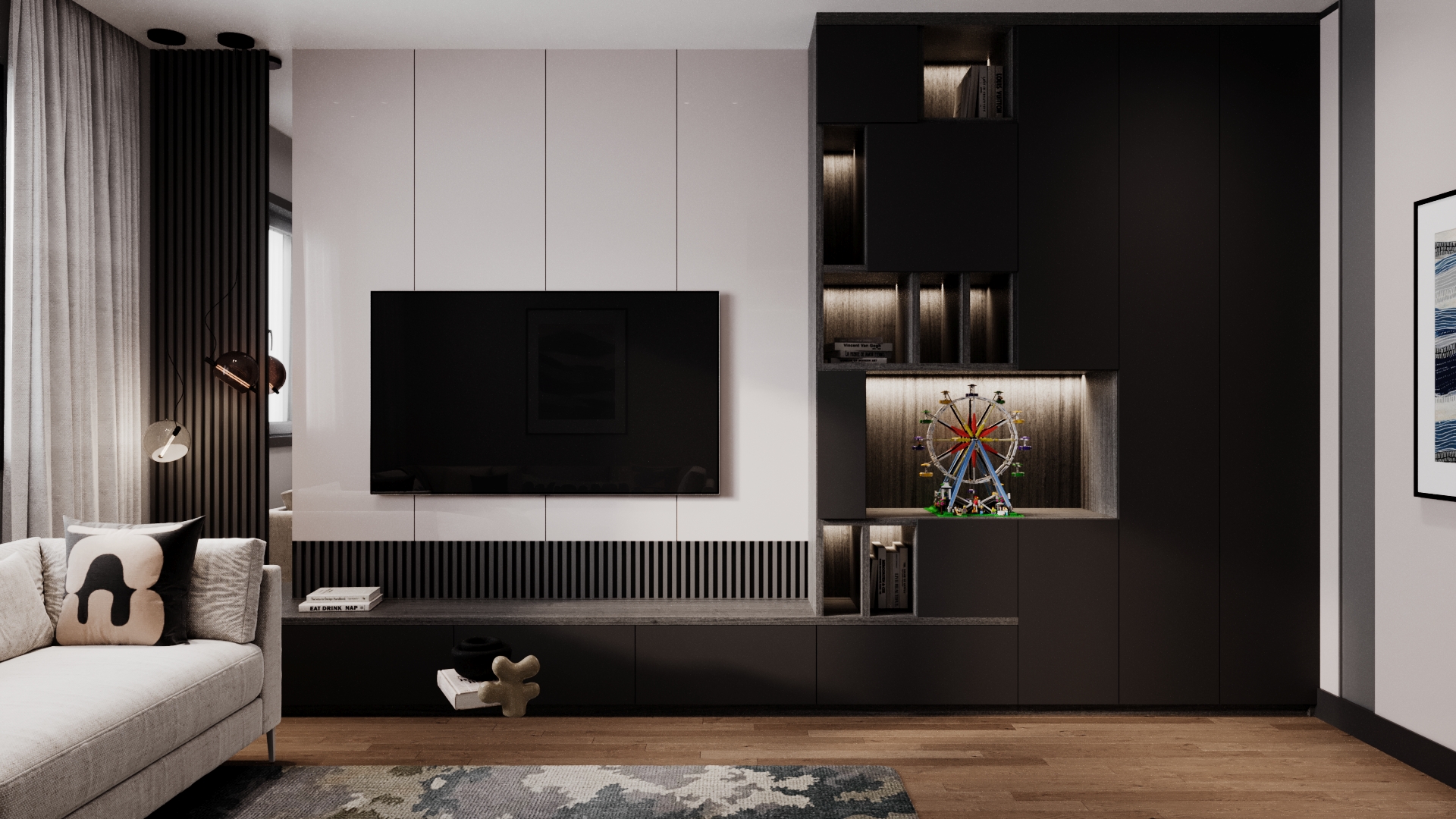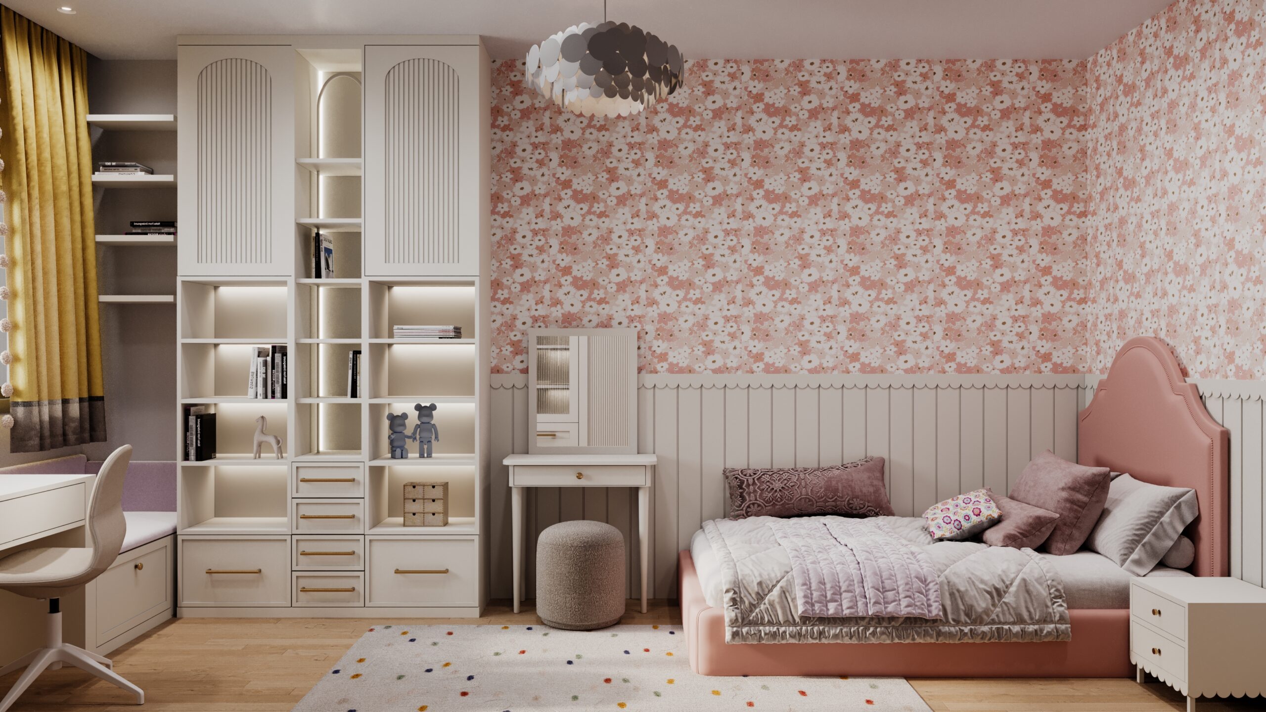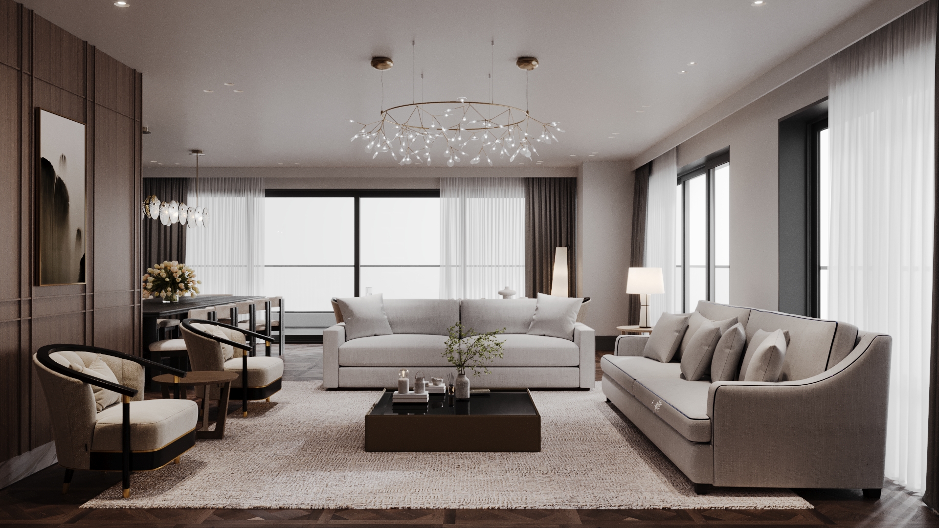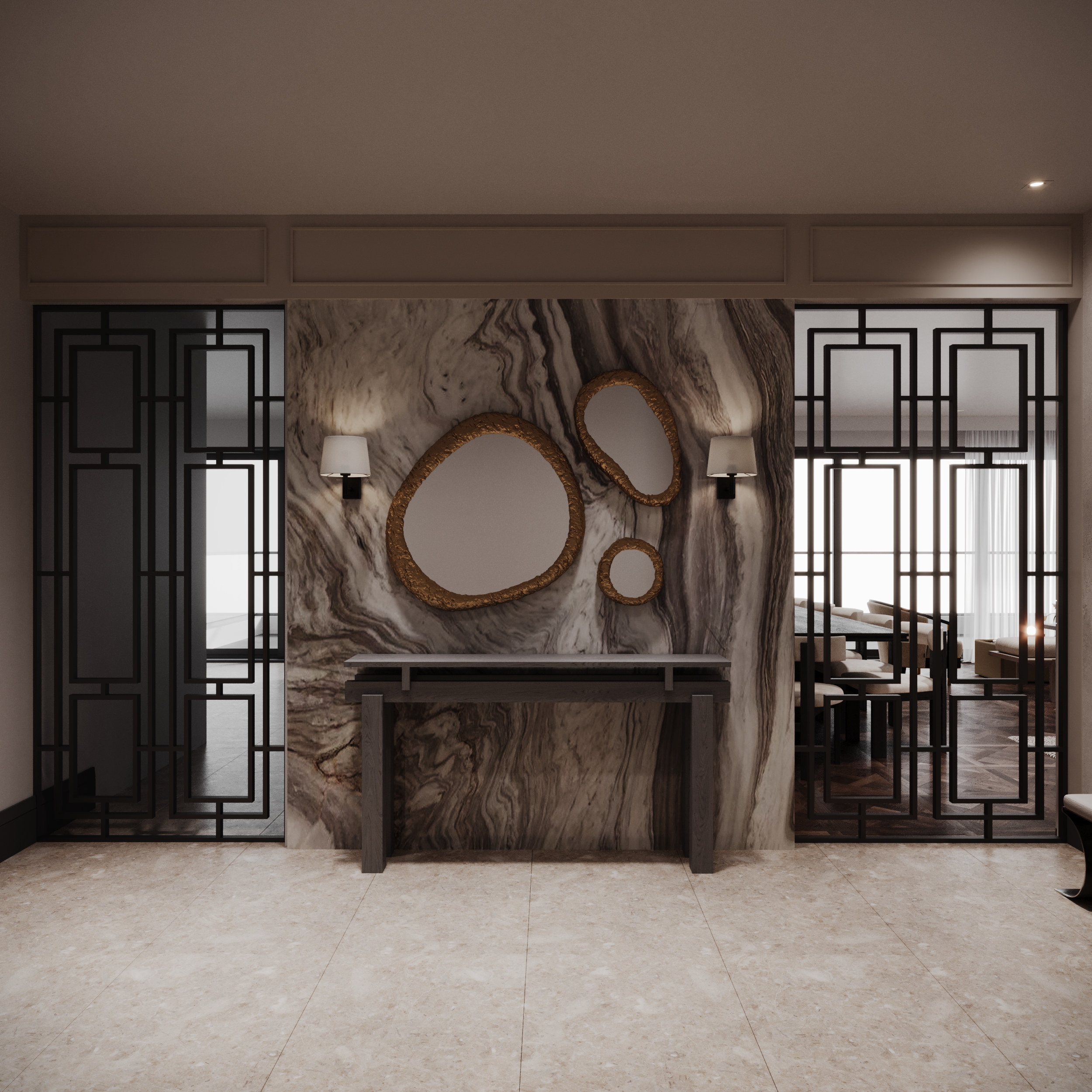 This family-oriented residential project is shaped around a functional and cohesive interior concept. Custom furniture solutions enhance spatial efficiency, while the harmony between wood and stone surfaces establishes a calm and natural atmosphere. Fine metal accents are introduced as subtle highlights, enriching the overall design with understated elegance and depth.The interior reflects a balanced approach where comfort, practicality, and timeless aesthetics come together.